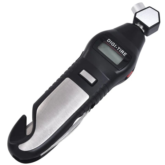MULTI-FUNCTION and PORTABLE: 8-in-1 Digital Tire Pressure Gauge with multi-function emergency survival and repair tools combines with tire pressure gauge, seatbelt cutter, pliers, scissors, 2 screwdrivers, LED flashlight and LED red rescue light into one. The Digital Tire Pressure Gauge is Light weight with ergonomic design. Compact design makes it perfect for easy storage in your car, bag, anywhere! Individually packaged in a handsome gift box that's perfect for giving and or leaving in your tool box for ease. Mad Man, masters of men's gifts. Material: Stainless Steel/Acrylic. Dimensions: 6.25" x 1.5"