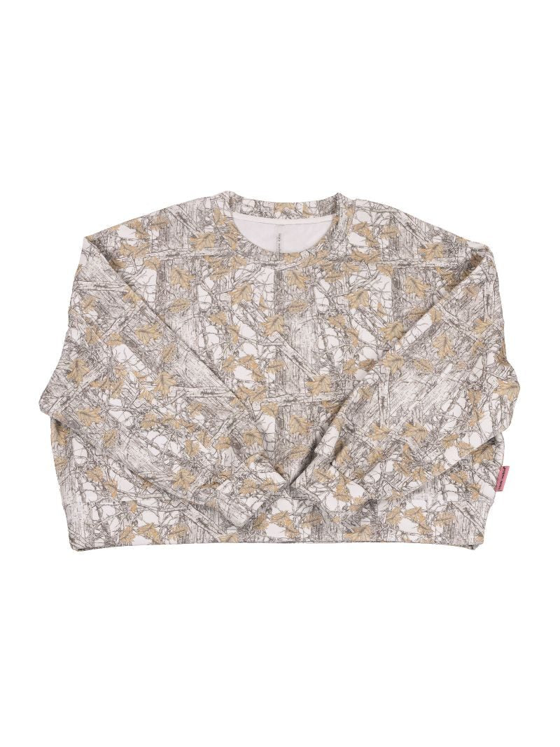Elevate your casual style with this women’s camo pullover, featuring a soft tan, white, and gray allover camo print. Designed with a collared neckline and snap button placket, this relaxed-fit top offers both comfort and versatility. The long sleeves and lightweight feel make it perfect for layering over a tank or tee for transitional weather, lounging at home, or pairing with your favorite shorts or jeans.