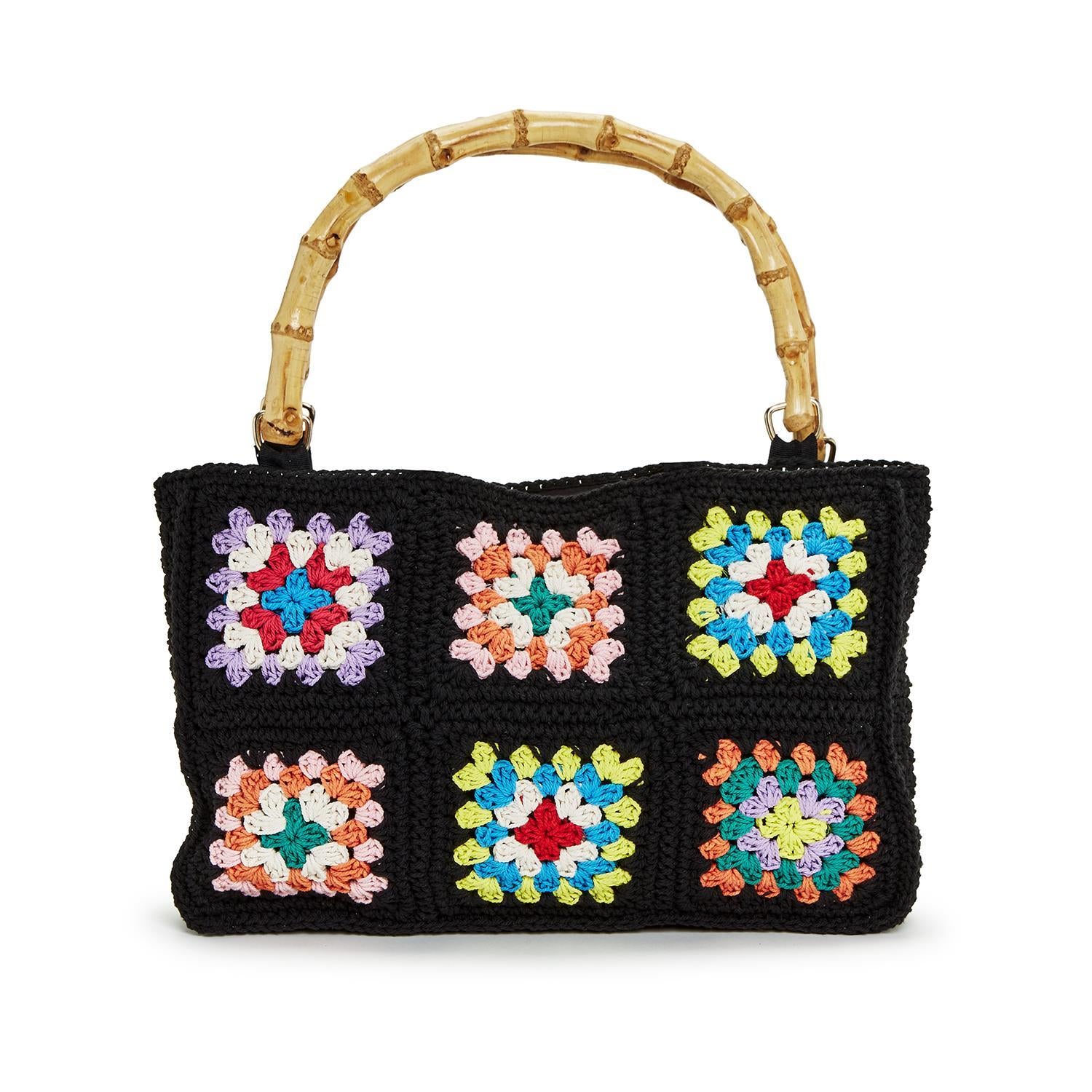 CROCHET TOTE BAG W/BAMBOO HANDLES