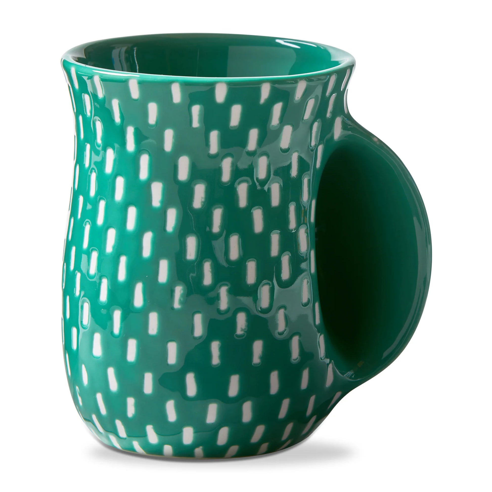 Sip in cozy style with this aqua-toned handwarmer mug, shaped for comfort and warmth in every cup.