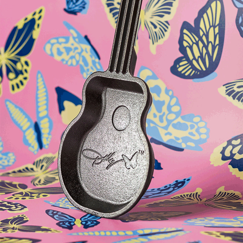 Celebrate two Tennessee legends with this collectible Guitar Mini Skillet. Lodge created this collector’s piece in honor of Dolly’s rockstar status, now and always. The skillet is perfect for a single portion of cornbread—but honestly, we’re happy just to hang it on the wall. Complete with detailed guitar strings and Dolly’s iconic signature, this piece is a perfect gift for Dolly fans and country music lovers alike!