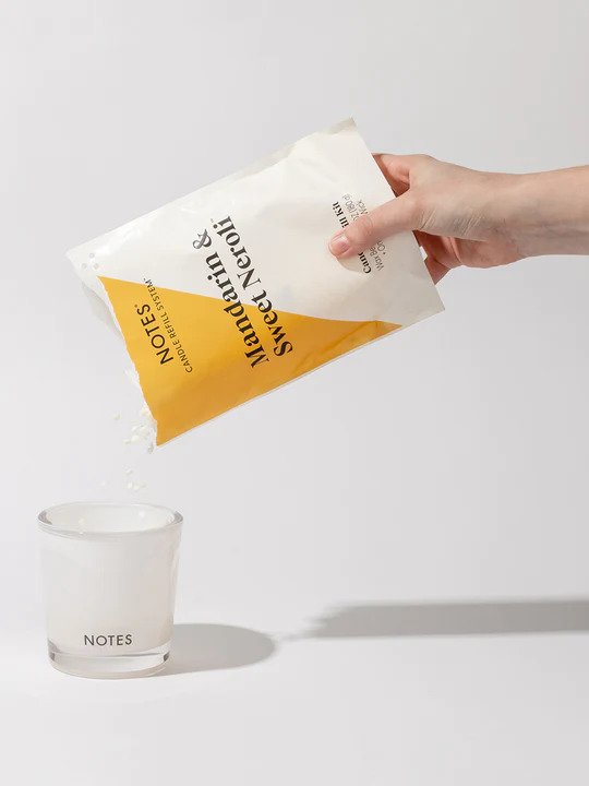 Meet the NOTES® Candle Refill Kit, because we believe in refills over landfills and a more responsible way to candle. Each Candle Refill Kit includes a perfectly portioned bag of fragranced wax beads and a lead-free, cotton wick. Use this kit with your NOTES® Starter Candle and Silicone Cleanout Insert (sold separately) for room-filling fragrance you'll feel good about.