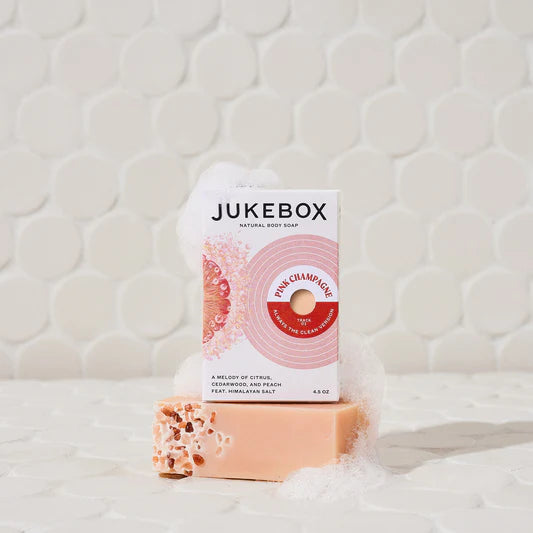Our fizzy pink grapefruit natural body soap topped with pink Himalayan rock salt. Smells like it sounds: lush & lively with a bubbly B-side.