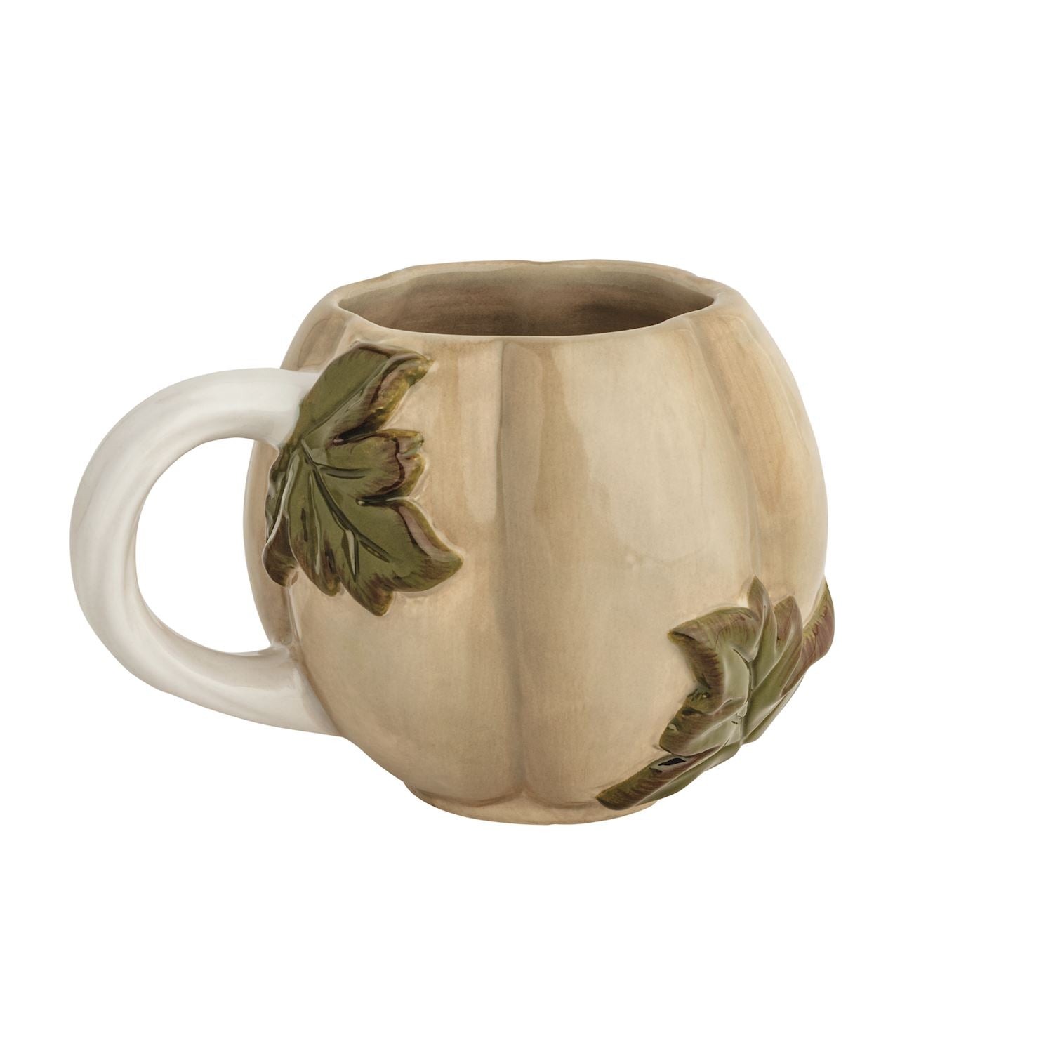 TAUPE LEAF HANDLE PUMPKIN MUG